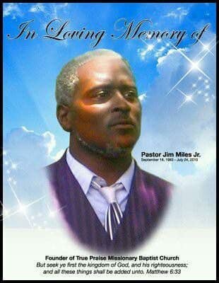 With this post, I honor my father, Pastor Jim Miles, Jr. and True Praise Missionary Baptist Church. I love you guys tremendously. Keep up the good work. Be Blessed.
